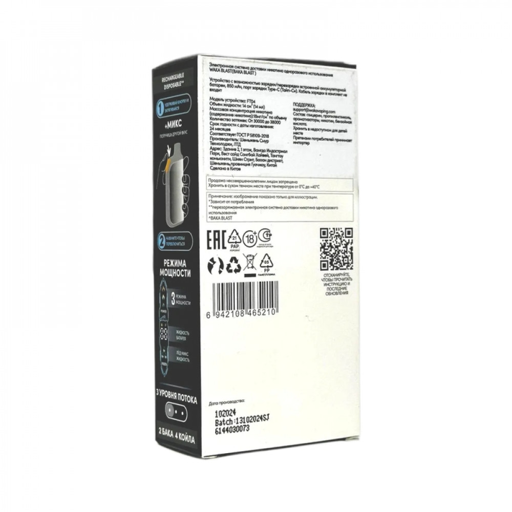 На складе Код товара: WAKA BLAST 38000 Hard - Tабак + ваниль микс